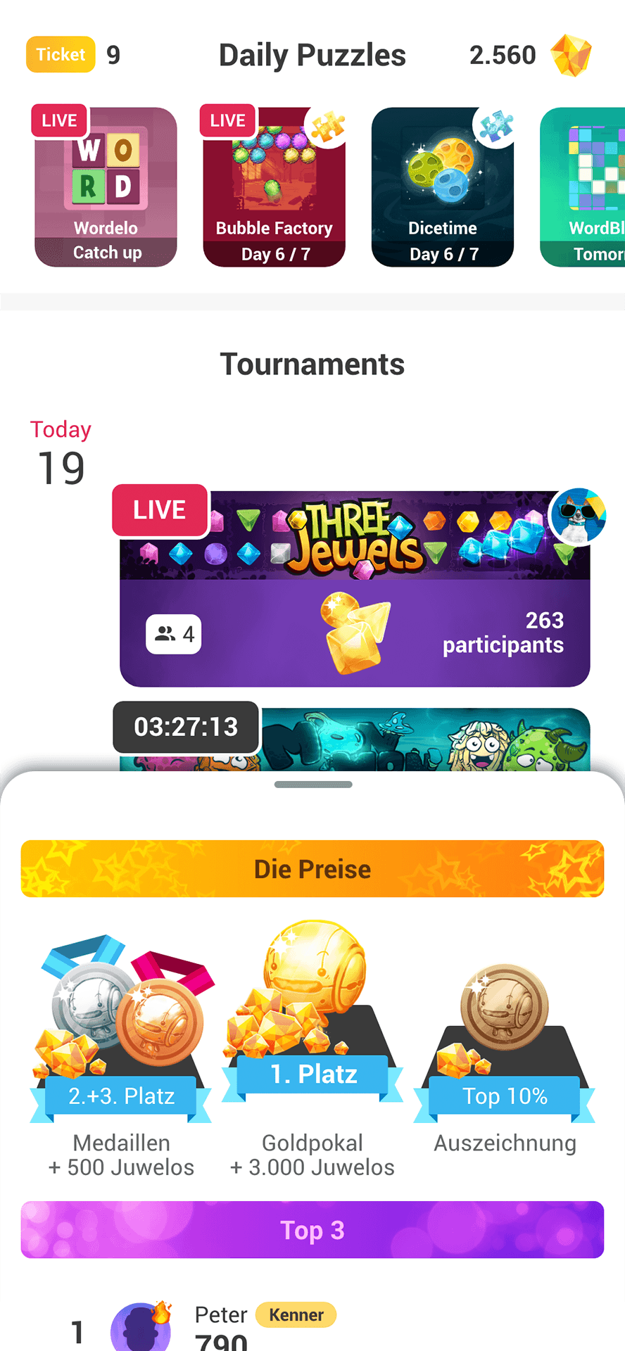 Auf elo gibt es viele Arten dein Spielkönnen unter Beweis zu stellen. Tägliche Rätsel, basierend auf bekannten Spielen, Turniere mit besonderer Live-Erfahrung oder einfach die Spielserie mit deinen Lieblingsspielpartner:innen.