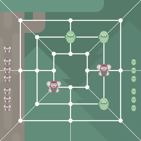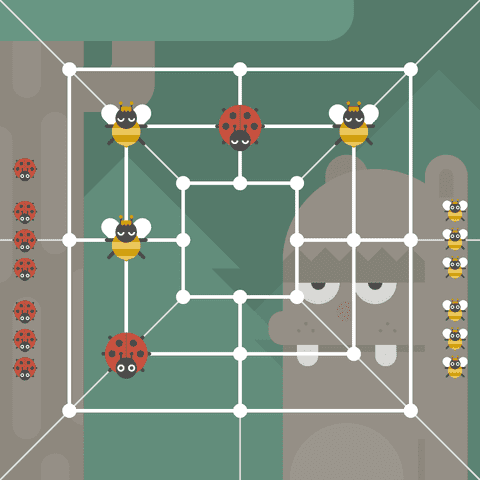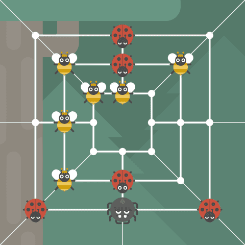 Bringe jeweils drei deiner Tierchen in eine Reihe und die Spinne holt ein gegnerisches Tier ab - zum Spielen, nicht zum Fressen! Bilde Dreiergruppen bis das Netz am Ende dir gehört.