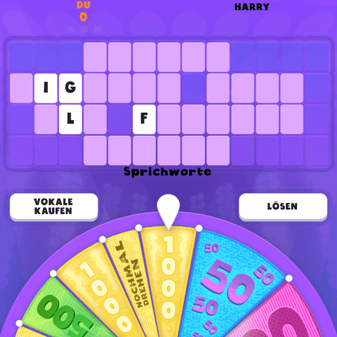 Bekannt als "Glücksrad" aus dem Fernsehen - nun darf man selber raten. Ob Sprichworte, Orte oder Abisprüche - die unterschiedlichen Kategorien lassen keine Langeweile aufkommen.
