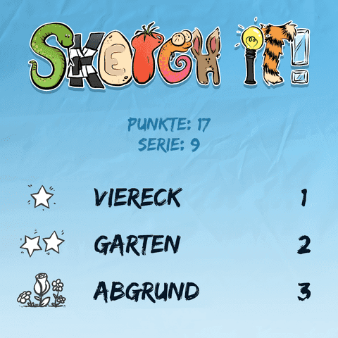 Wähle einen Begriff und zeichne ihn! Dein:e Mitspieler:in muss dann das Gezeichnete erraten. Künstlerisches Talent kann von Vorteil sein, muss aber nicht...!