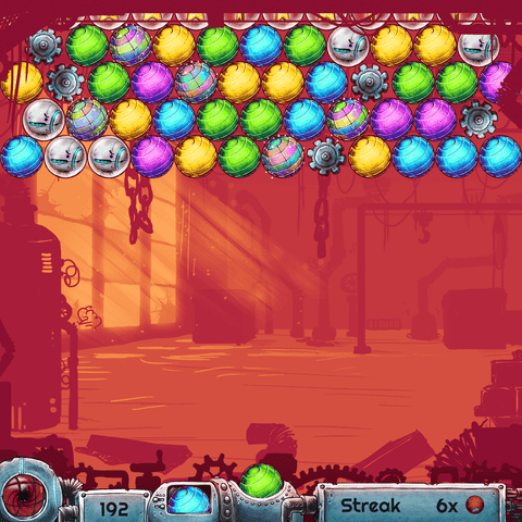 Platziere taktische Schüsse, um das alte Fabrikgebäude von Kugeln zu befreien. Mit Geschick kannst du Specials produzieren und noch schneller voran kommen.